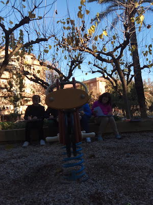 Así han estado los alumnos de primero de ESO. Trabajando y dibujando en el Parque a pesar del frío que hacía. Dibujando los objetos del parque y aplicando los conocimientos sobre los sistemas de representación. Que mejor sito para aprender que en el parque.